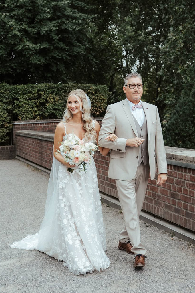 A-Line Sweetheart Tulle Lace Appliques Wedding Dresses with Train DM25102202