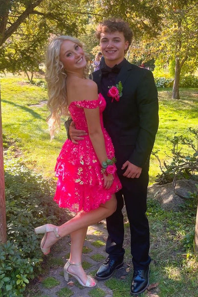 Cute A Line Off the Shoulder Hot Pink Tulle Homecoming Dresses DM24102912