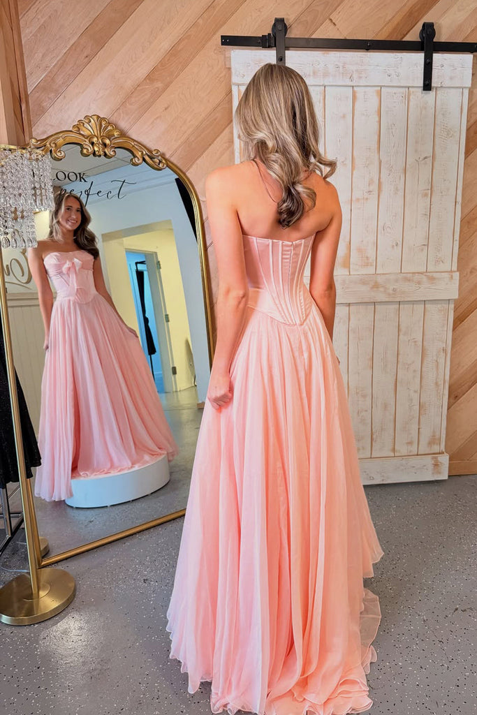 Cute A Line Strapless Blush Pink Chiffon Prom Dress DM1111802
