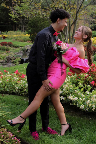 Cute Off the Shoulder Pink Satin Tight Homecoming Dresses DM24101509