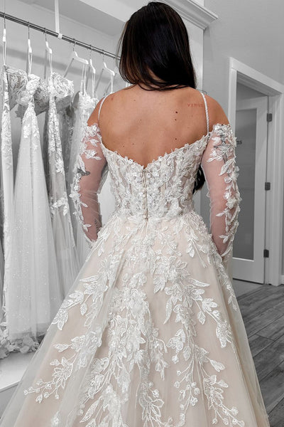 Dazzling A-Line Cold Shoulder Lace Wedding Dress with Appliques DM4070709